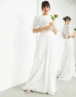 ASOS EDITION Victoria Flutter Sleeve Crepe Wedding Dress, Ivory