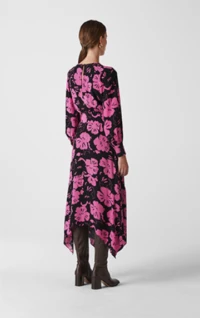 Whistles Ari Floral Hibiscus Belted Dress, Pink/Black
