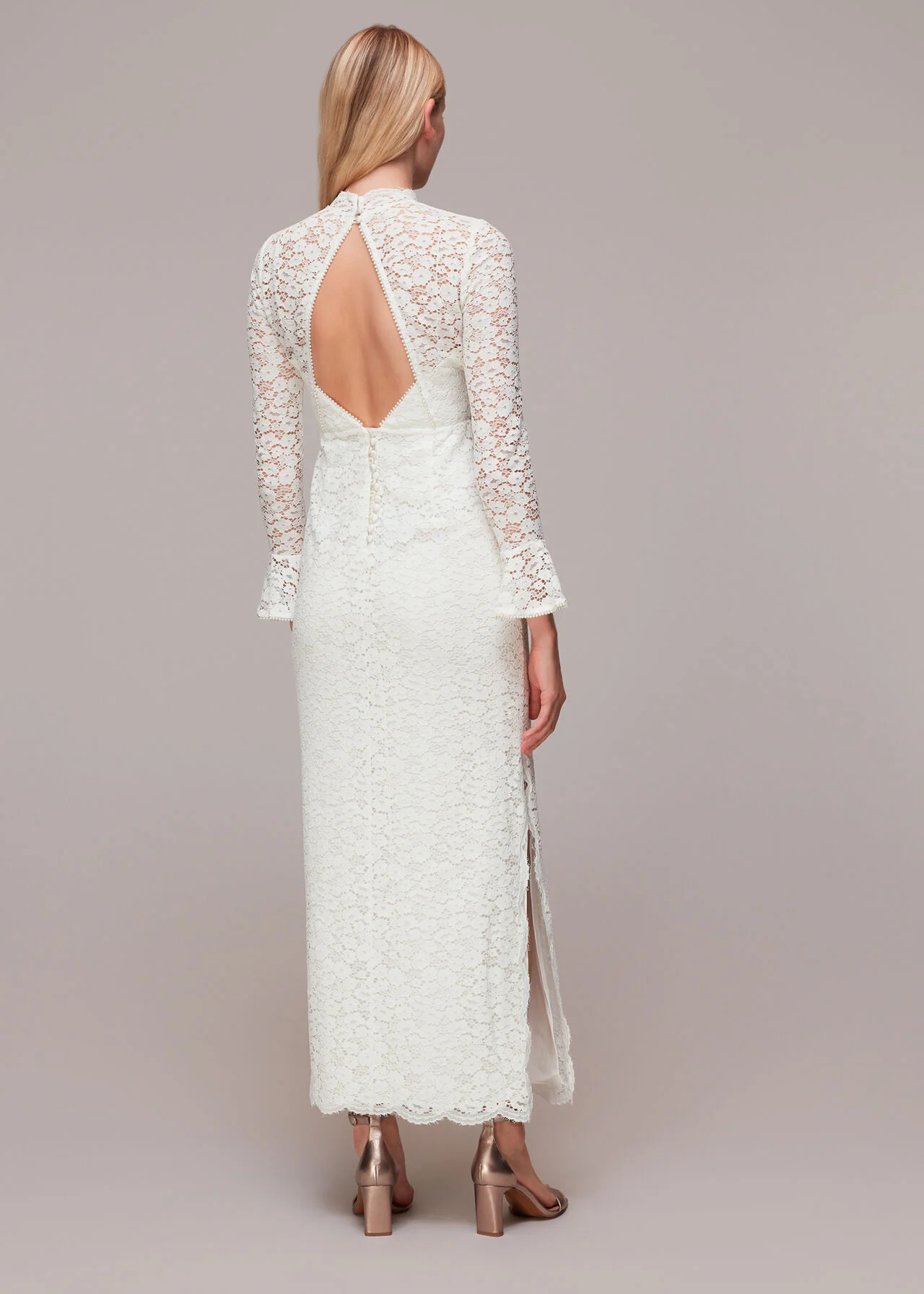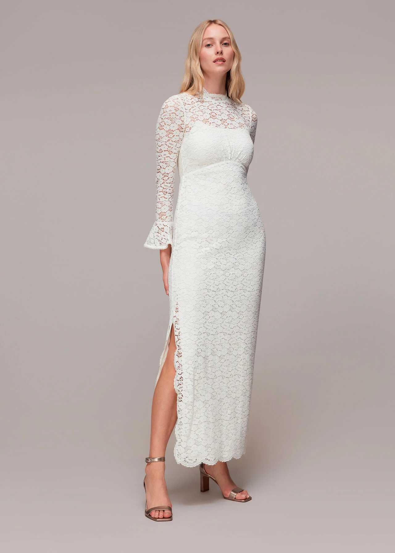 Elevate the wedding look with our chic Frances dress. Crafted in an elegant ivory hue, this dress is designed in simple cami lining covered with lace, featuring cut out details and side split.